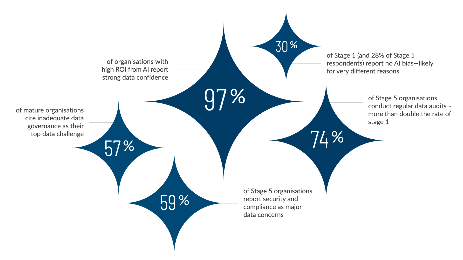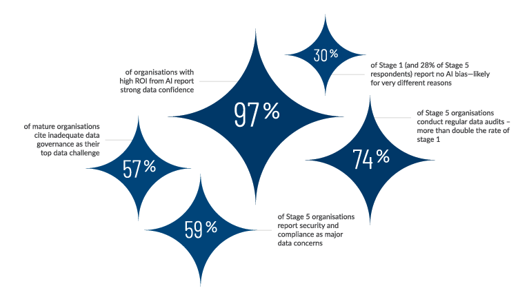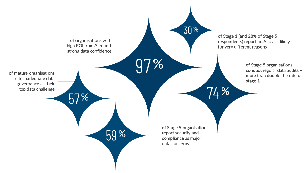 No Audio ⏸ From Data Confusion to AI Confidence Data Is the Foundation of Trustworthy AI Download report Global Insights on Data Confidence AI PULSE SURVEY | VOL 2 5 min read Data isn’t just fuel—it can also be friction. The latest AI Pulse Survey reveals that the biggest barrier to AI success isn’t technology—it’s trust. Organisations that outperform in AI are those that trust their data, govern it well, and empower their teams to use it confidently. This report highlights how data confidence drives ROI, where gaps persist, and what leading organisations are doing to turn complexity into clarity.Watch the on-demand webinar What your peers are saying about AI Adoption Vol. 2 Key Findings AI Maturity Stages Defined These 5 stages of maturity were leveraged by respondents to benchmark their status. Scaling AI? Scale your data confidence too Data Confidence by AI Maturity Confidence in data: a maturity markerKey takeawaysProgress with AI closely correlates with the quality and management of data.Early-stage AI adoption often begins with not-fit-for-purpose, incomplete or imperfect datasets, which are refined over time through iterative processes.As organisations mature, their data practices become more structured and intentional. Data Confidence by Industry Technology sector leads the way in data confidenceKey takeawaysA strong culture of innovation and early AI adoption – along with easy access to digital infrastructure and fewer regulatory barriers – gives the technology sector a distinct competitive edge over other sectors.Financial services data trust variability is significant in a sector where minor data issues can lead to serious consequences.Retail and consumer packaged goods confidence levels are mixed which may reflect the challenges of managing large volumes of customer and supply chain data across multiple channels. Data Confidence Pays Off Organisations confident in their data are 3x more likely to exceed AI ROI expectationsKey takeawaysData confidence grows with maturity.This confidence is built through a combination of governance, training, and transparency—not just technical infrastructure.As organisations mature, they become better equipped to manage and trust their data, which directly fuels AI success. Bias Awareness Evolves with Maturity Stage 1 and Stage 5 both report low bias—but Stage 1 likely isn’t seeing it, while Stage 5 is actively reducing it.Key takeawaysBias is always present; but recognition, detection and mitigation depends on data literacy and maturity. As organisations progress, they develop the literacy and frameworks needed to identify and reduce bias—transforming it from a hidden risk into a managed variable.Stage 5 organisations mitigate bias proactively through governance and transparency.Early-stage organisations may need better tools and frameworks to identify bias. Their relatively simple use cases may also factor into making bias less likely. Data dragging you down? Biggest hurdles to AI optimisation Data Challenges by AI Maturity From start to scale: security and tech gaps hold AI back Overcoming Data Challenges Train hard, audit often, scale smarter Meet the minds behind the report and insights Peter Mottram Peter is a Managing Director in Protiviti’s Technology Consulting Practice and leads the Enterprise Data and Analytics (ED&A) solution globally. He has more than 20 years of experience in data and analytics including IT, information management strategy, data management, data security & privacy, regulatory compliance, master data management, business intelligence and advanced analytics solutions. Most of his career has been focused on Financial Services including clients such as MUFG, SunTrust (now Truist), JPMC, Wells Fargo, Morgan Stanley, Comerica and many others."When it comes to launching AI initiatives, waiting for perfect data can be a major roadblock. The truth? Progress starts with imperfection. Here are five reminders to help your team move forward confidently - even when the data isn't flawless."Read "Avoiding the perfect data trap: five key reminders for AI success" in the full report Connect on LinkedIn Matt McGivern Matt is a Managing Director in Protiviti's Information Technology Consulting group where he leads Protiviti's Global BI and Data Governance solution area. He has more than 18 years of experience in information technology, financial services and project management. He has worked in professional services for the last 15 years, focusing on data warehousing, financial and management reporting, project management and full lifecycle software development. He has also completed major projects focused on financial and management reporting, business intelligence and general management consulting.At Protiviti, he is focused primarily on business intelligence, strategy and technology projects. He is the Global Lead for Protiviti's Information practice, covering BI, Data Governance, and Data Warehousing.“Investments in data quality must reach front-end systems — where trust is often weakest. Strengthening these entry points may be the best opportunity to build lasting confidence from the ground up.” Connect on LinkedIn Keep your finger on the AI Pulse Key links All AI Pulse Results Key links Download the full report Explore our AI Studio Watch the on-demand webinar Learn about our AI Services All AI Pulse Results Vol. 1: From AI Exploration to Transformation Vol. 2: From Data Confusion to AI Confidence Vol. 3: From Automation to Autonomy ✕ Scroll to top Home AI Adoption Scaling AI Data Challenges Meet our experts Keep your finger on the AI Pulse